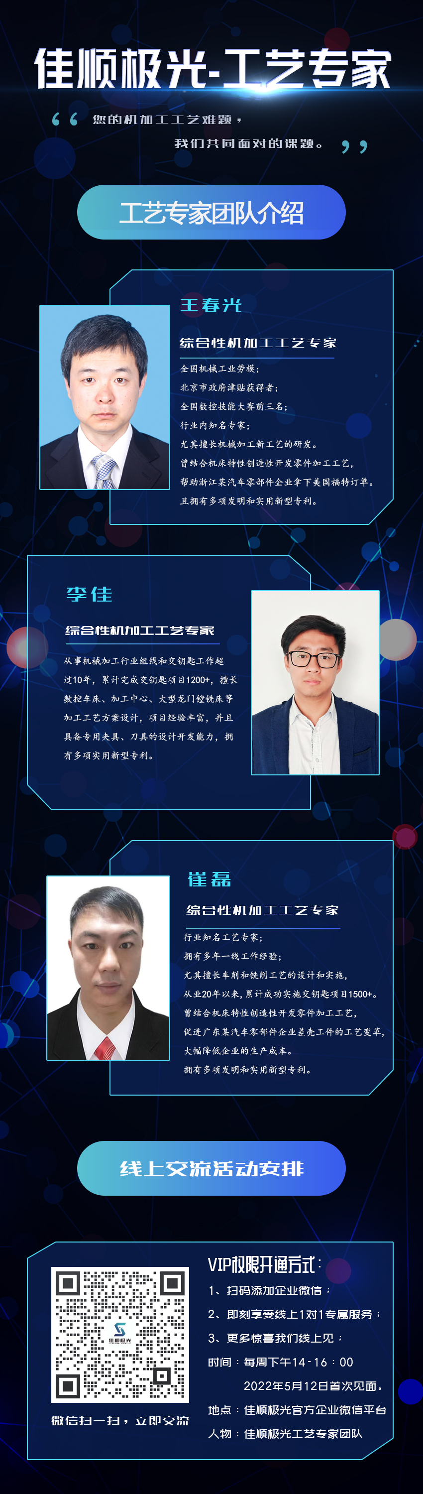 即日起,您只需微信扫码添加佳顺极光企业微信即可获得永久VIP资格,获得佳顺极光VIP权限的客户,可以每周免费享受一次线上1对1的工艺专家服务,让工艺专家轻松到您身边。